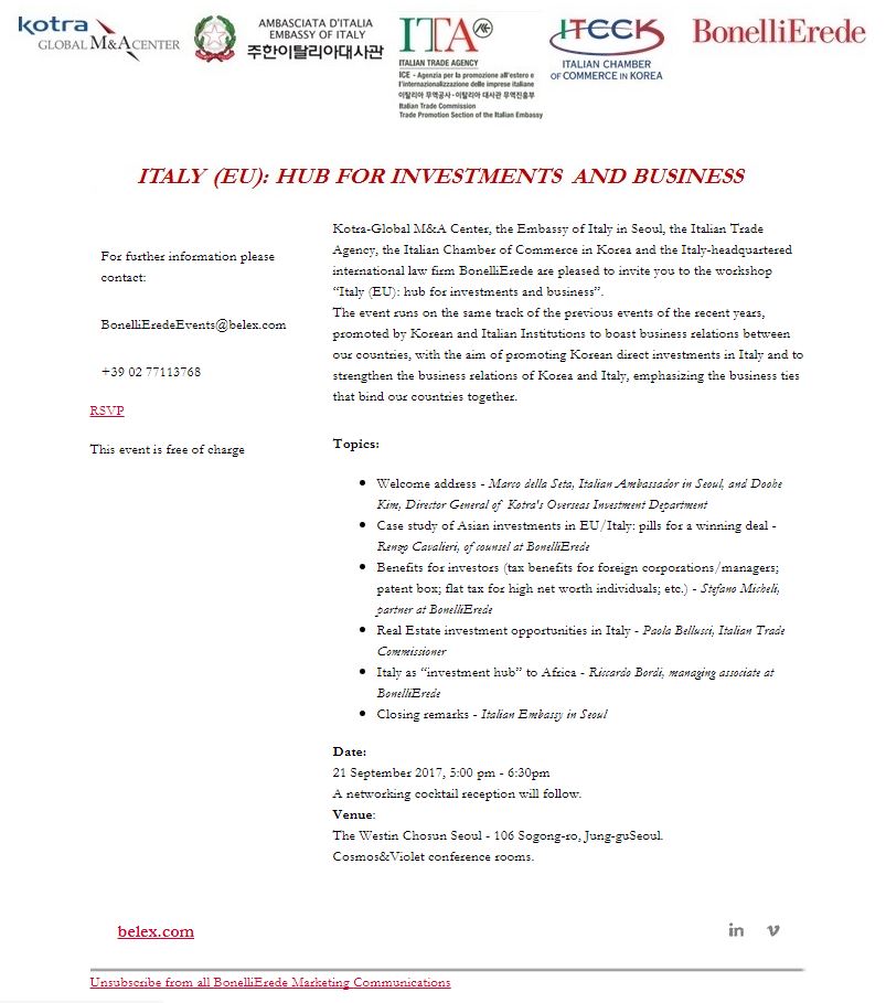 ITCCK - Italy (EU): hub for investments and business (September 21st)