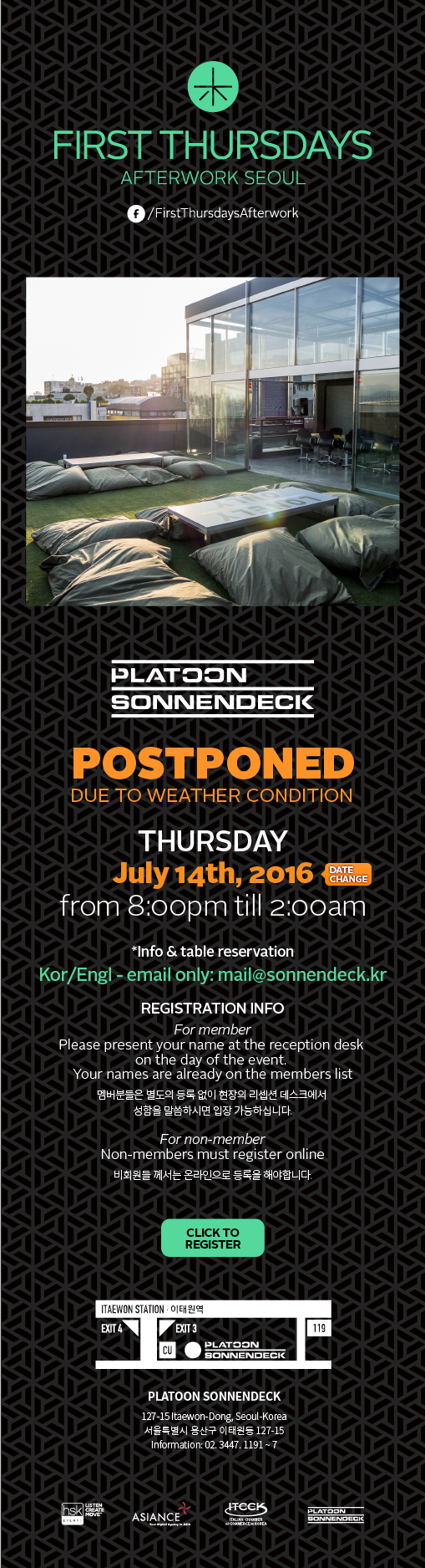 HSK - First Thursdays Afterwork Party Summer Edition @ Platoon Sonnendeck Itaewon (Seoul, July 14, 2