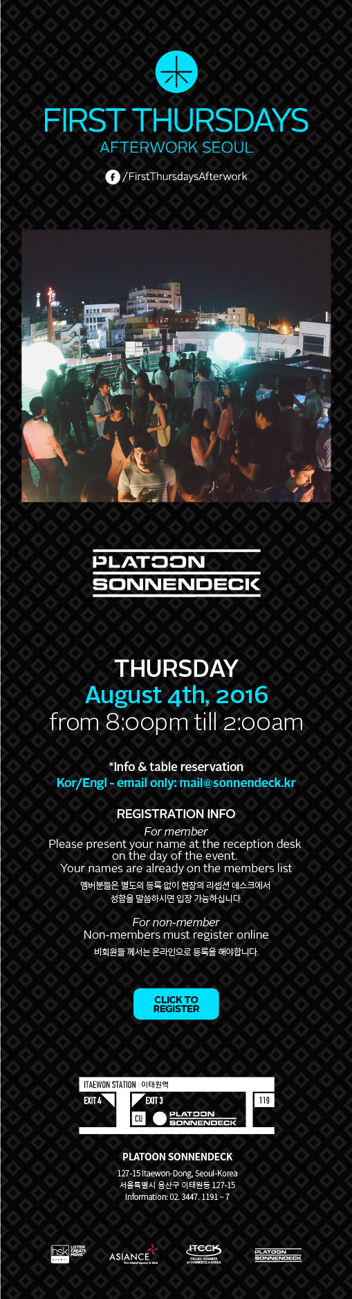 HSK - First Thursdays Afterwork Party Summer Edition @ Platoon Sonnendeck Itaewon (Seoul, August 4,