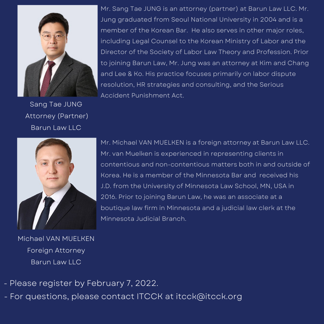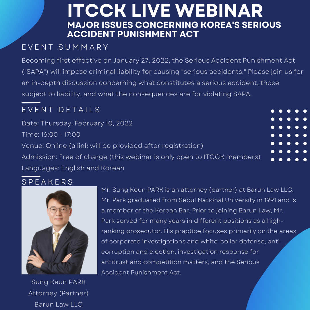 ITCCK Webinar 'Major Issues concerning Korea's Serious Accident Punishment Act' with Barun Law
